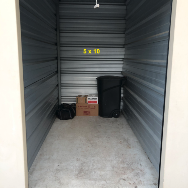 Our small self-storage units are offered in sizes of 5’x10’ to 7.5’x15’. These units are ideal for storing items such as boxes, small furniture, or the belongings from a single room. They can accommodate several boxes and some smaller items, making them a convenient choice for your storage needs. For reference, the size is comparable to that of a small half bath.